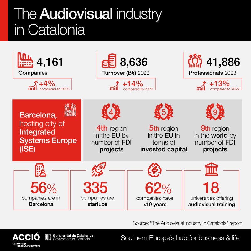 Catalonia provides an extensive offering of audiovisual studies and a wide range of audiovisual Master's degrees. This talent also generates a dynamic ecosystem of events and fairs that promote and give visibility to the industry, as well as attracting even more fairs to Catalonia’s capital, such as the Integrated Systems Europe event (ISE), the world’s most relevant audiovisual trade fair, previously held in Amsterdam and now held in Barcelona since 2021.